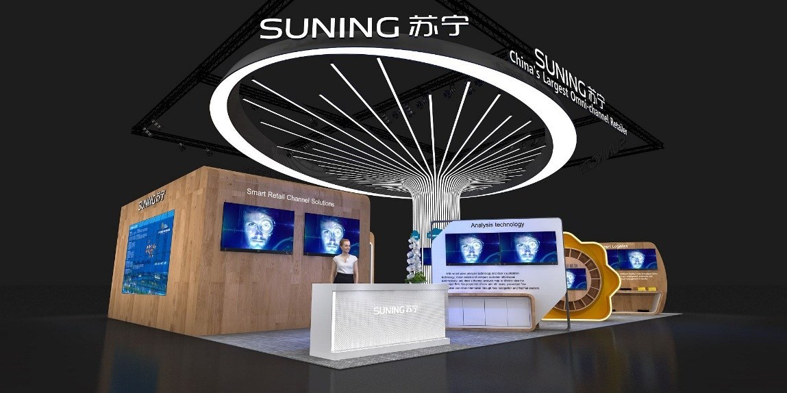 Stoisko firmy Suning z motywem Suning — największy w Chinach detalista omnikanałowy znajdujące się na stanowisku 26030 w obszarze LVCC S2 da gościom wgląd w futurystyczną wizję inteligentnego handlu detalicznego i inteligentnego domu przez zaprezentowanie szeregu aplikacji komercyjnych wykorzystujących sztuczną inteligencję w całym bieżącym portfolio biznesowym firmy Suning.